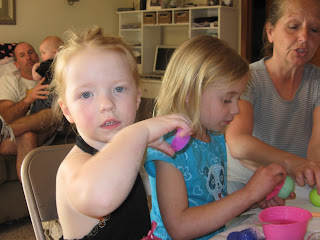 Anyway, we had a great Easter weekend. It was beautiful and sunny on saturday and we had family over to color eggs. The kids lost interest quickly...(really who could blame them for wanting to play in the sunshine?) so the adults ended up coloring the eggs mostly.